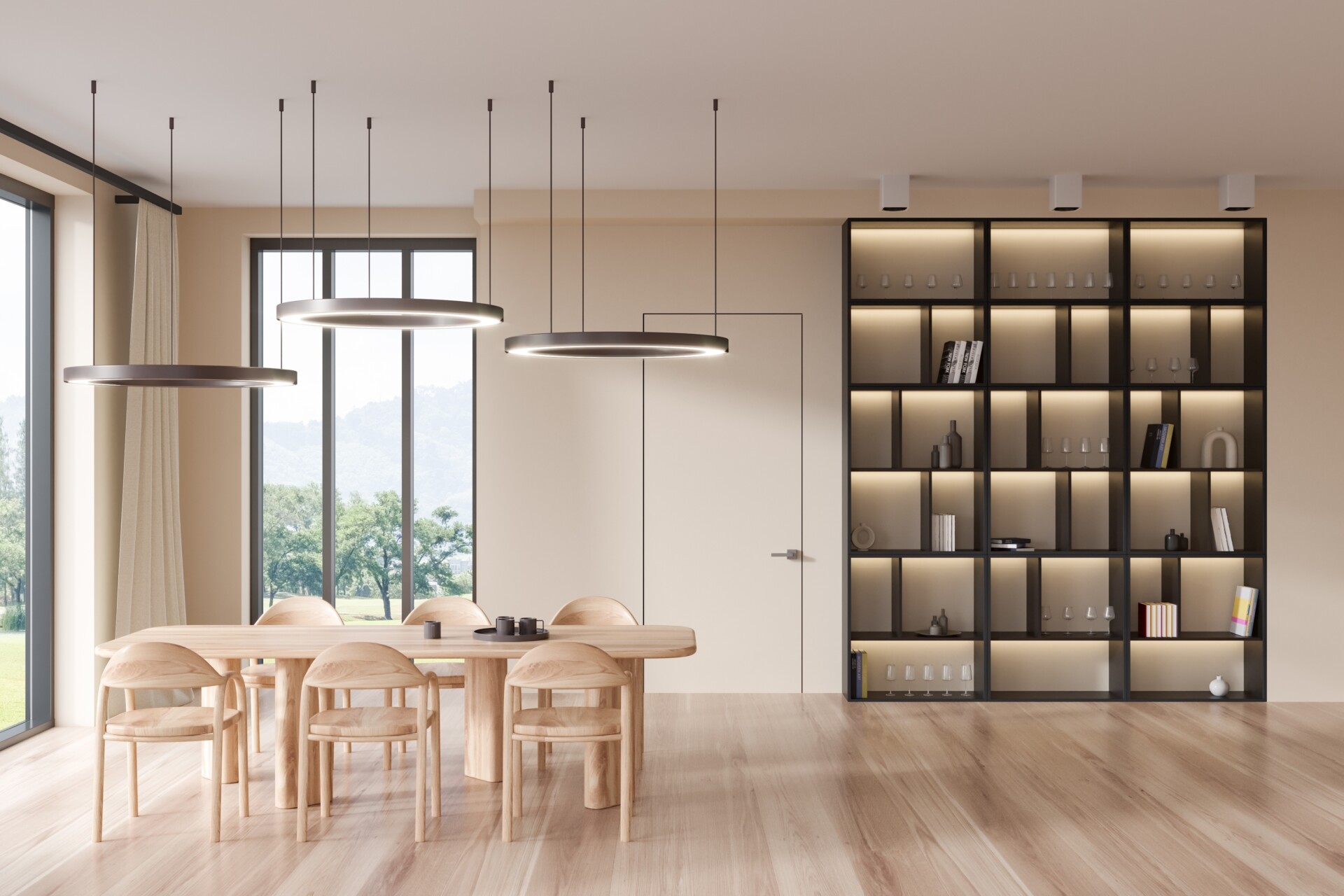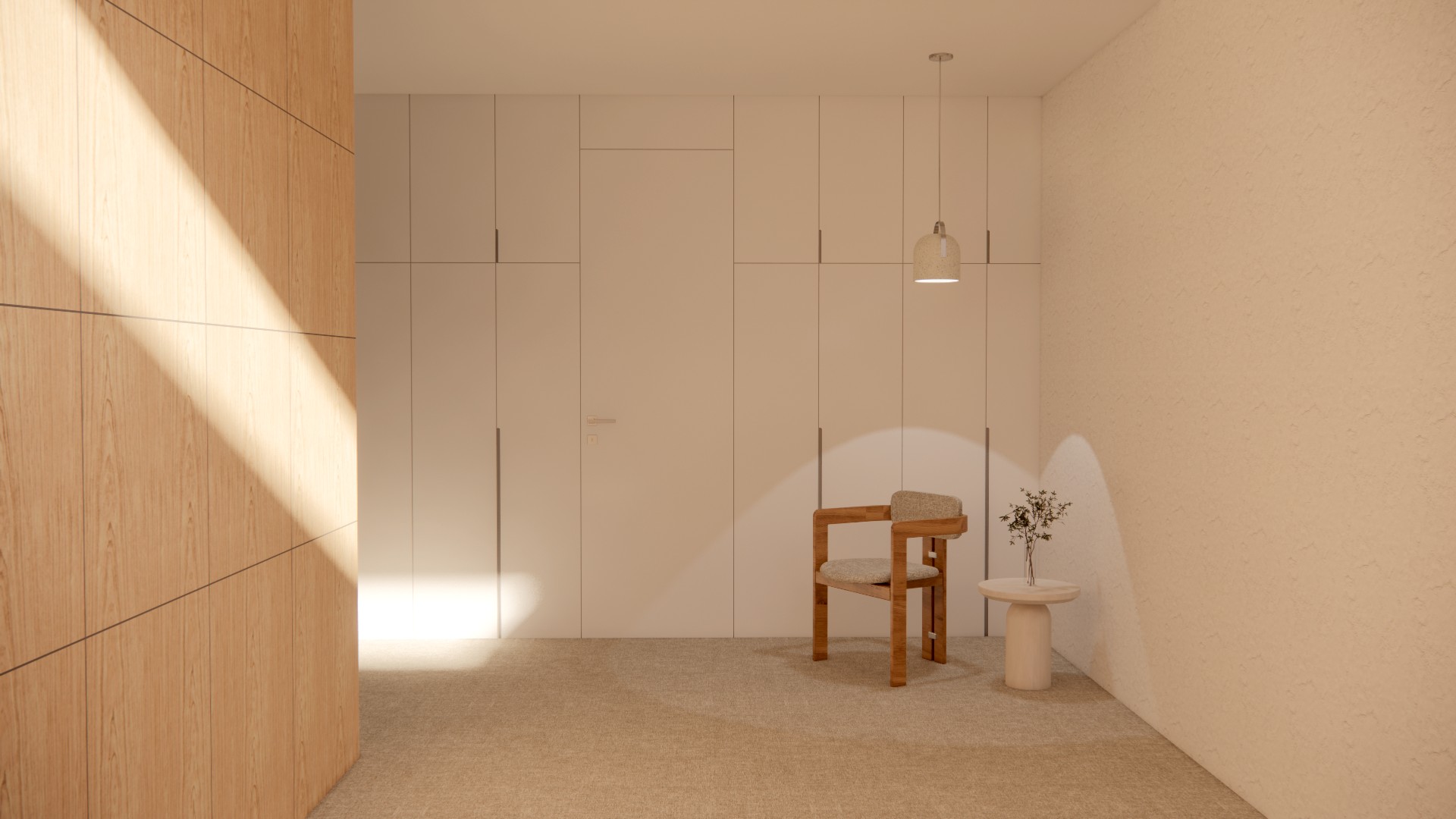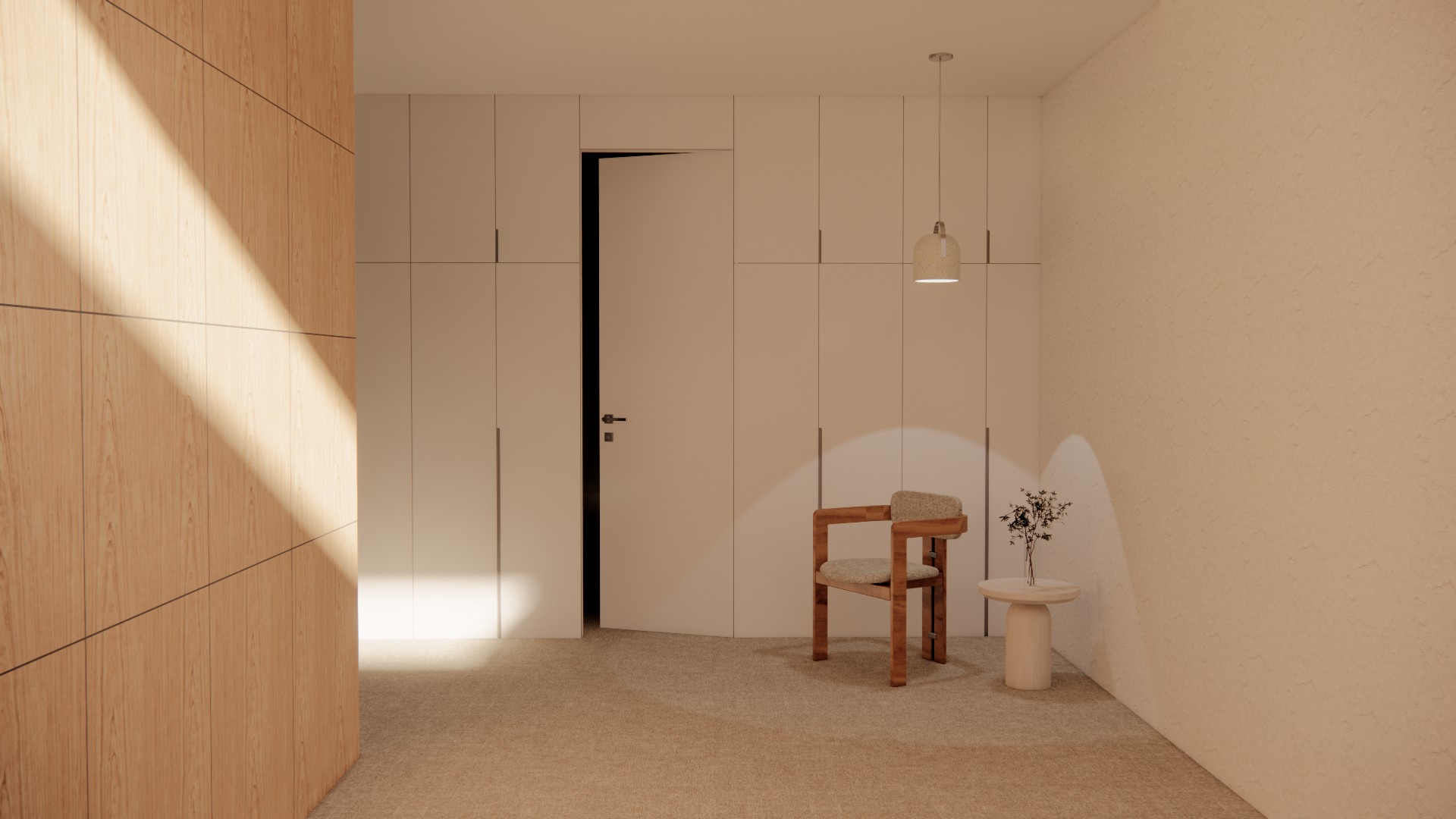 Cloison à ossature métallique qui pourra intégrer une porte coupe feu à chant droit avec des paumelles invisibles sans huisserie (non inclus), hauteur 2040 mm.
