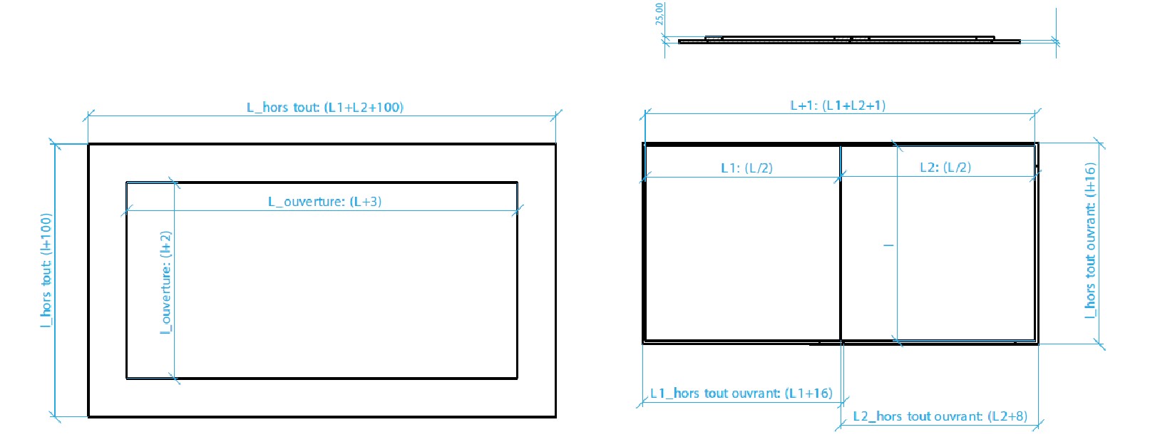• de 1 ouvrant amovible affleurant chants primairisés, feuillure de 8 mm réalisée par languettes en plaque de plâtre très haute dureté, renfort oméga, 16 mm en acier 5/10ème pour les grandes dimensions.