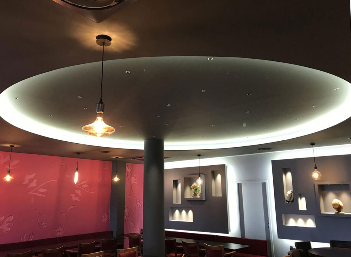 Grâce aux courbes créées, les espaces sont redéfinis et gagnent en fluidité, tandis que volumes et jeux de lumière se répondent harmonieusement.